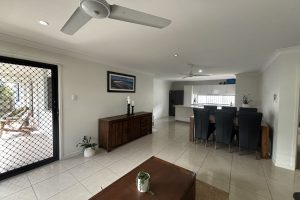 Open plan living areas are tiled and airconditioned while the eye-catching kitchen is light and bright with dishwasher and space for a large fridge.