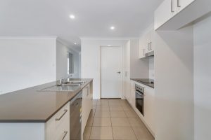 – galley style kitchen with pantry, stone benchtops and dishwasher