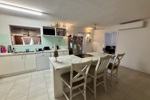 Air-conditioned, open plan family/dining with modern island style kitchen.