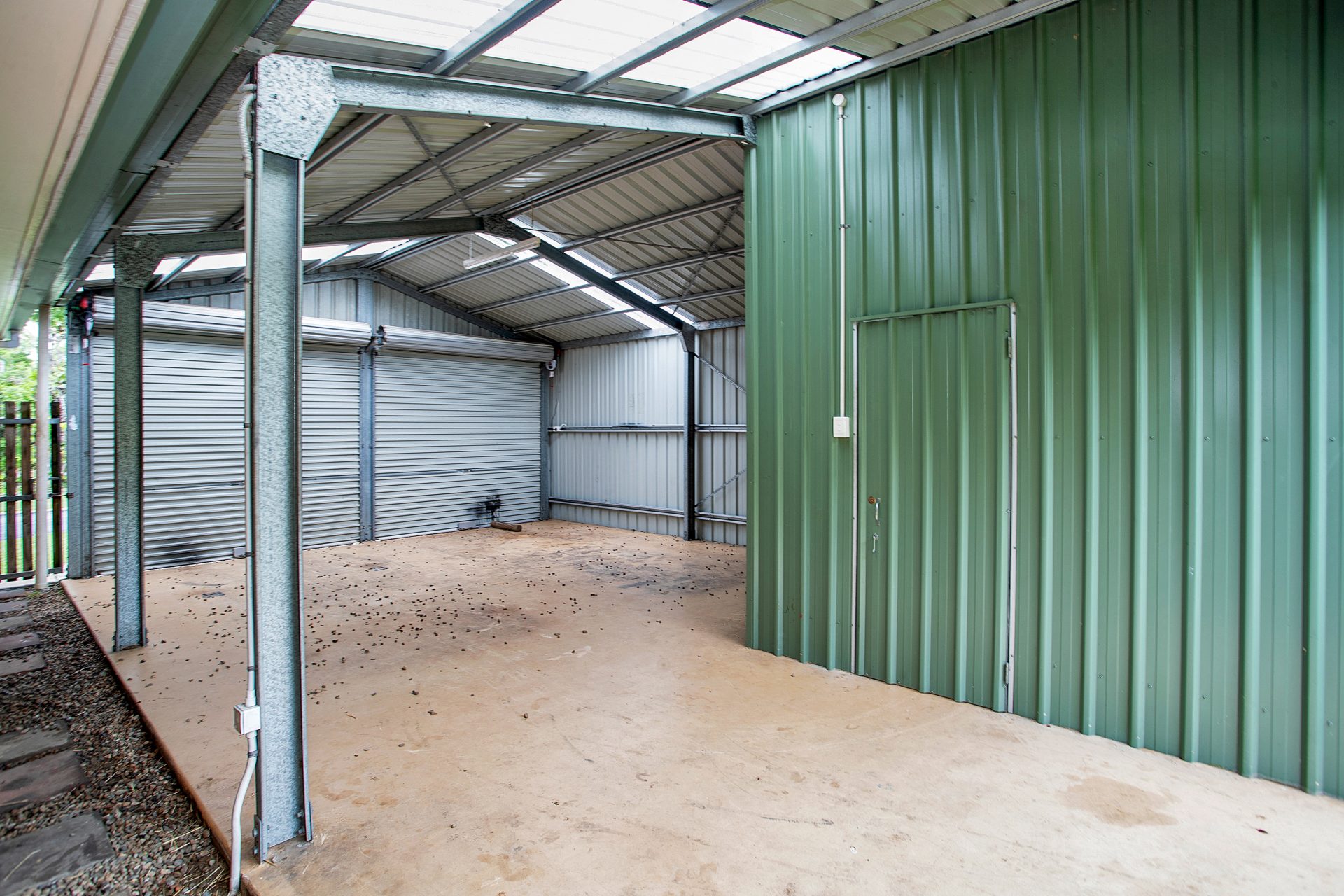 Large double bay shed with additional storage
