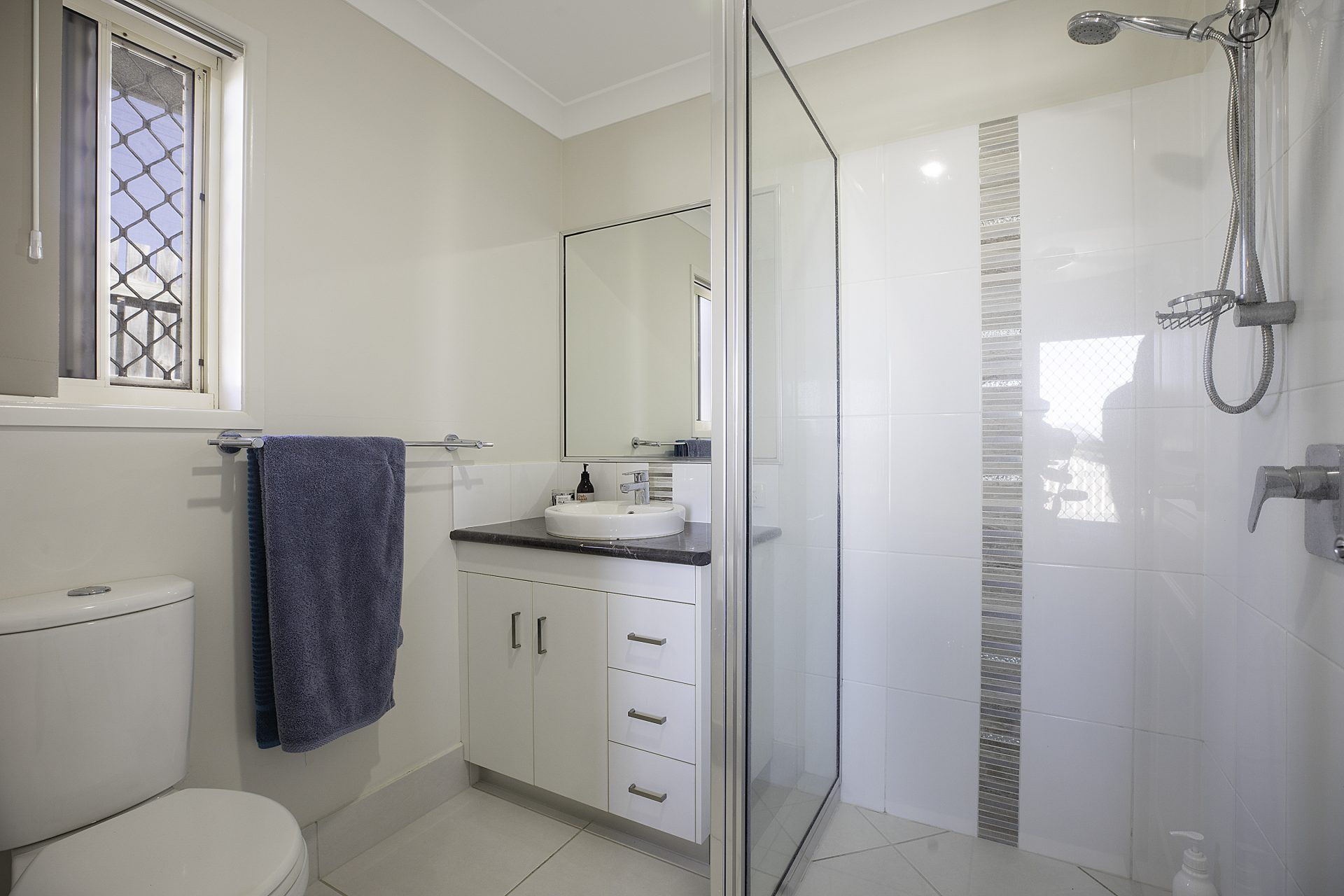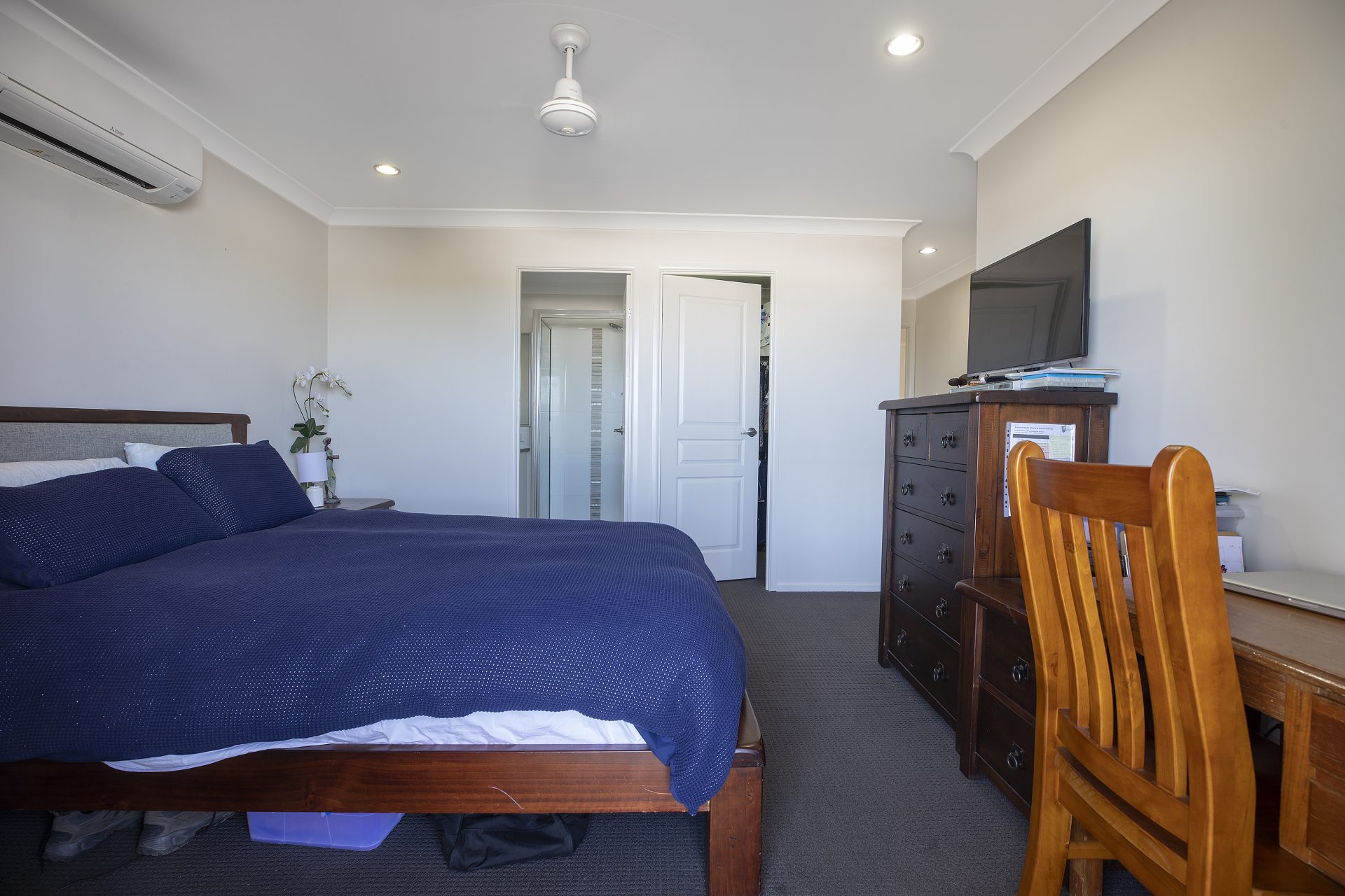– master bedroom is at the rear of the house & has been designed for privacy in mind. It has a sliding door to the outside which allow lots of breeze & light into the room, Ensuite in neutral tones and walk-in robe to complete the space.