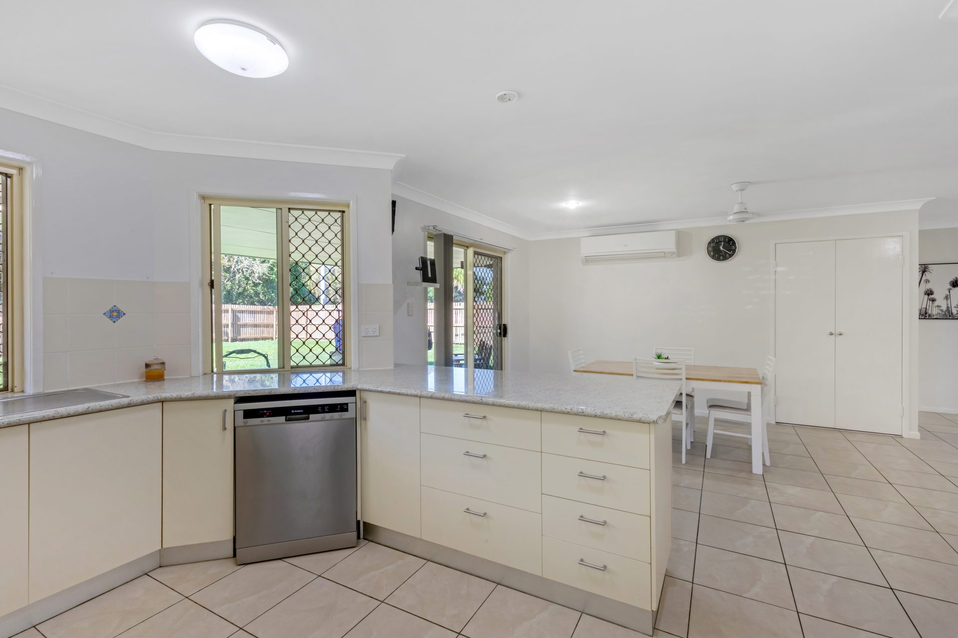 Three roomy bedrooms, main with split system air conditioner