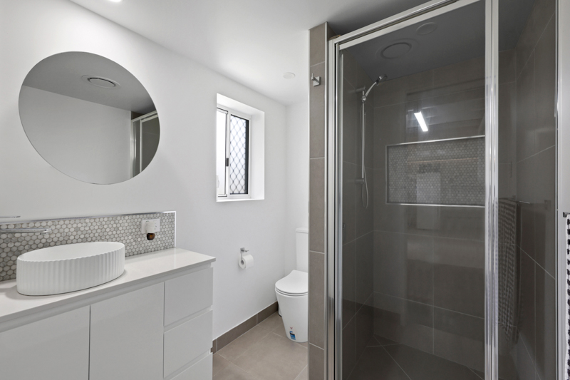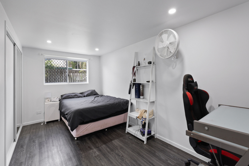 Downstairs has been transformed, featuring a fully renovated modern bathroom with quality tiling, contemporary shower and LED lighting, plus a newly constructed additional room complete with air conditioning and built-in wardrobe. This creates flexibility for extended family, guests, teenagers or even a work-from-home setup. The renovated laundry with kitchenette-style fit-out further enhances the dual-living potential.