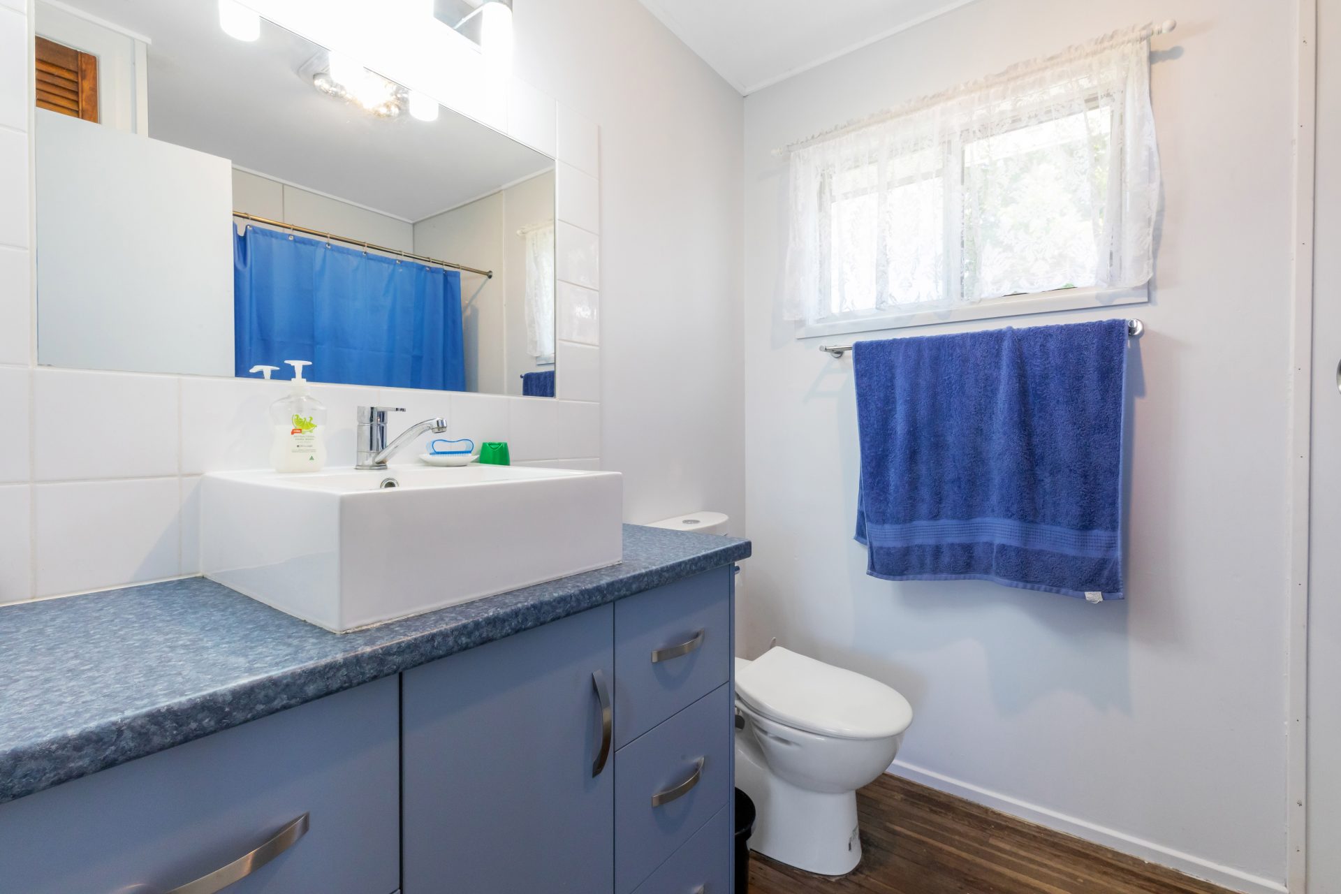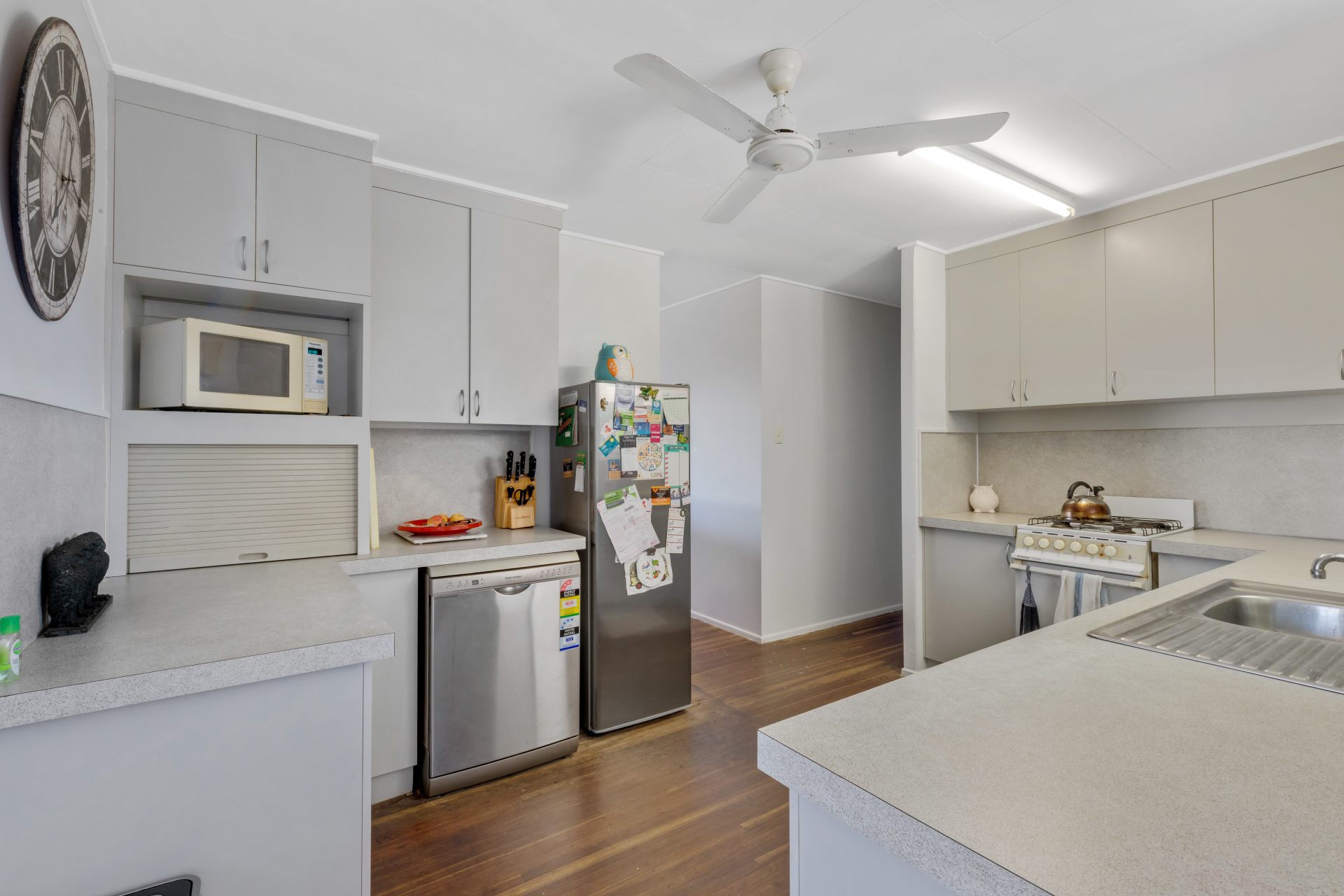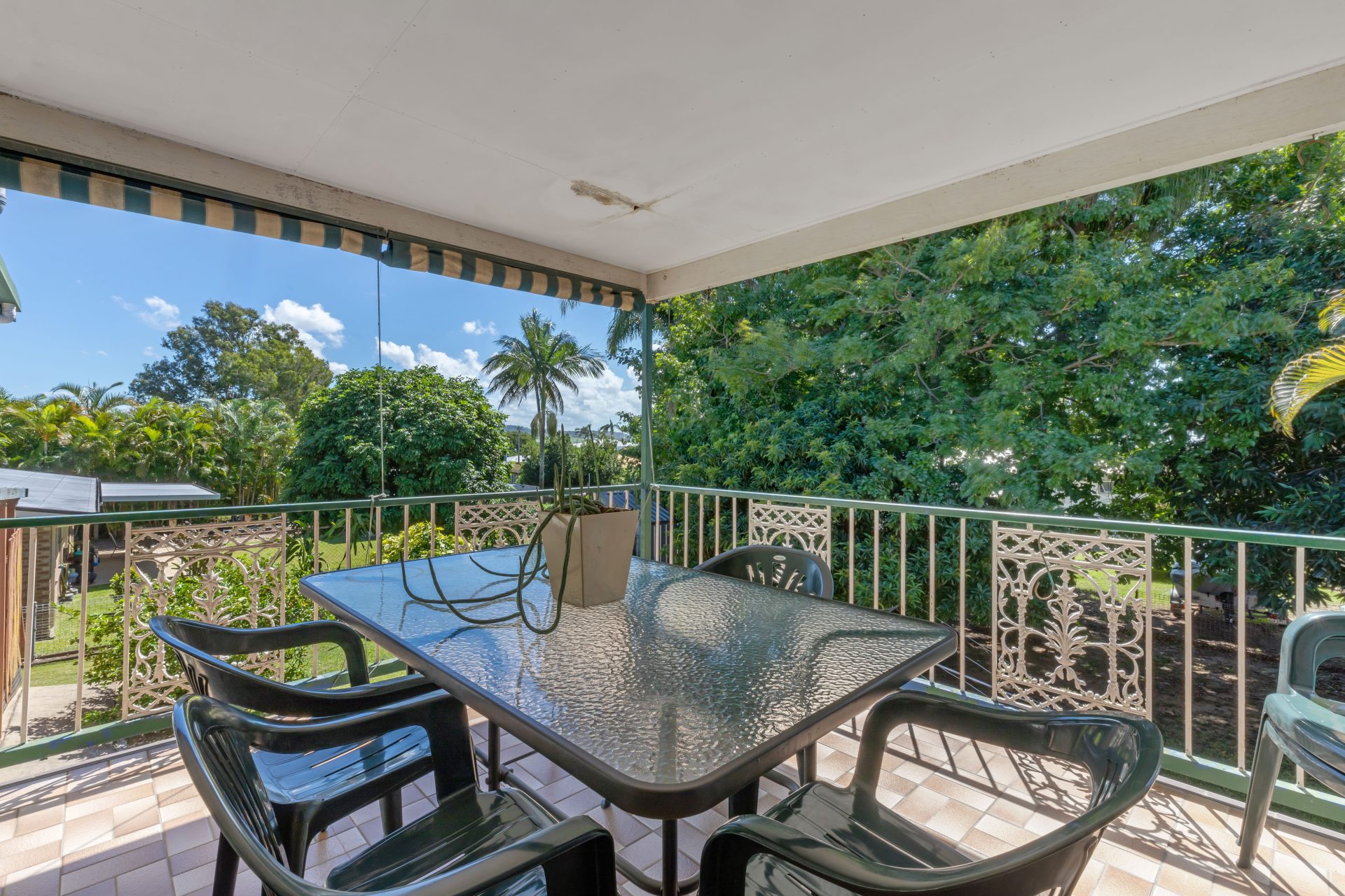 This lovely classic high set home is very spacious upstairs and down. The upstairs has three bedrooms and a large living area. The kitchen is spacious and leads out onto the back deck.