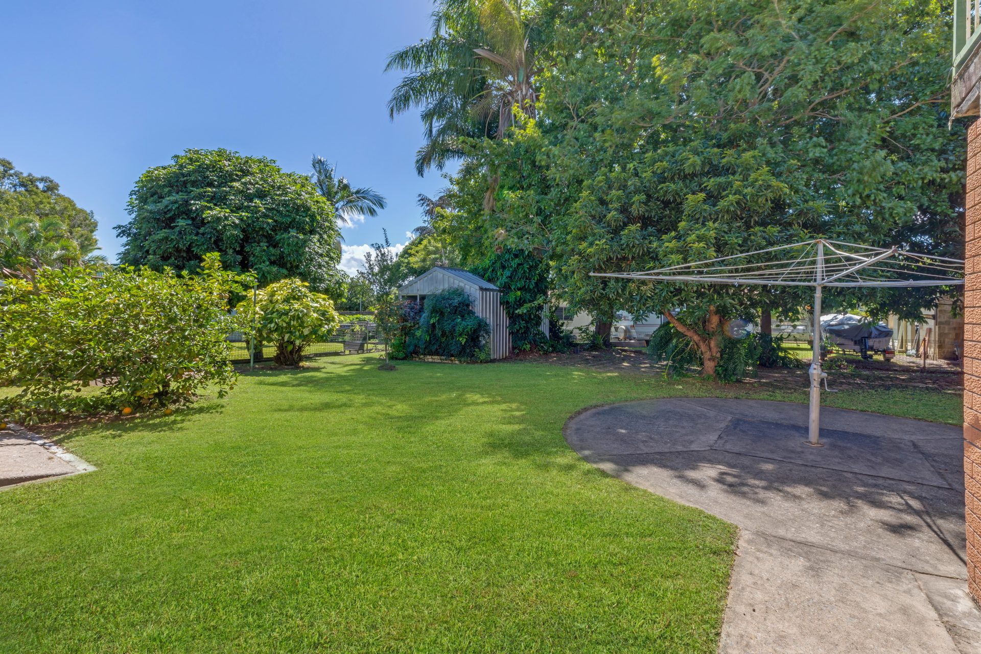 Back yard is large enough for a pool or shed