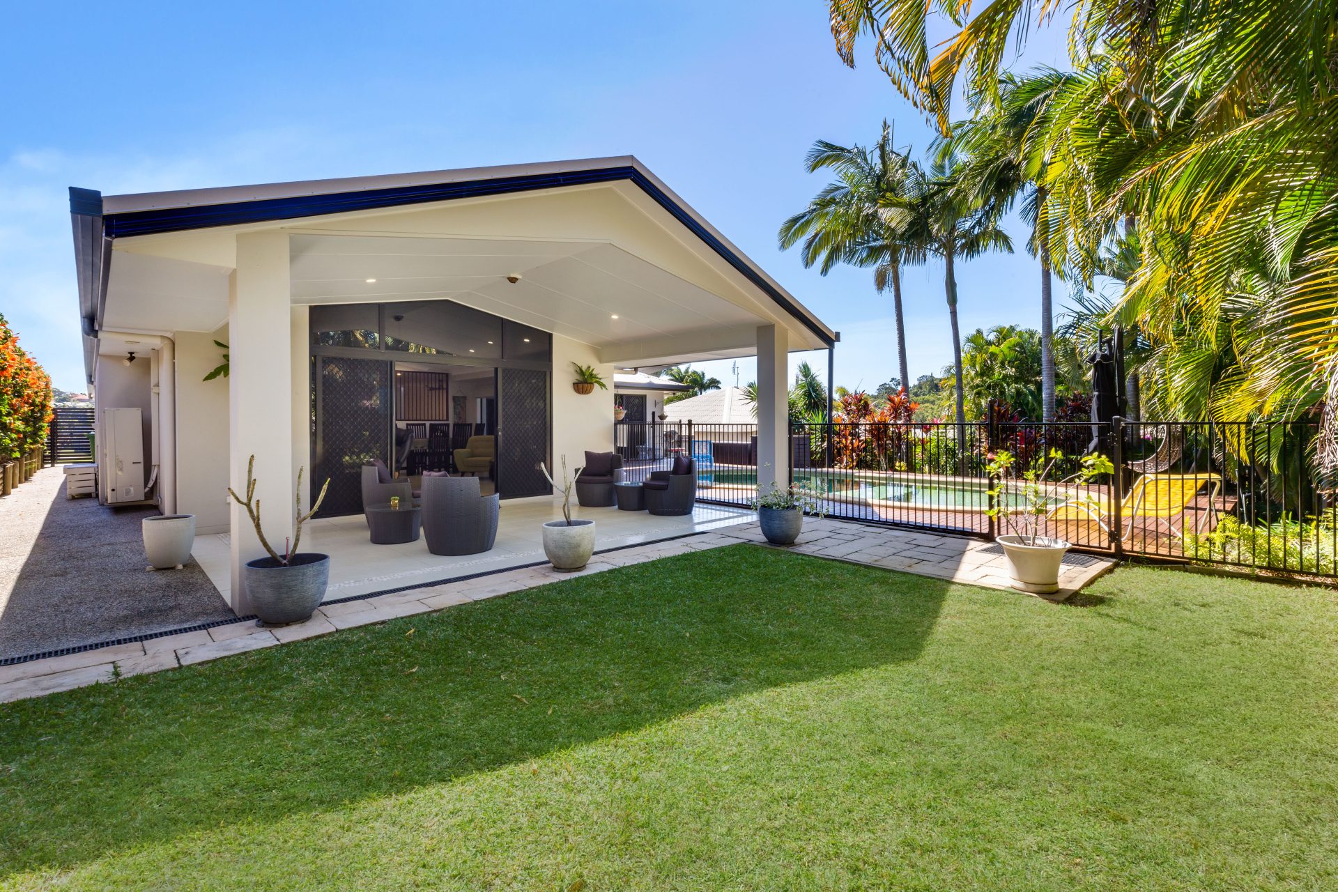 The property has open plan living area, with the kitchen being in a central location, giving easy access to the outside entertaining area. Outdoor back area encompasses the in-ground pool and an expansive covered patio. Features: