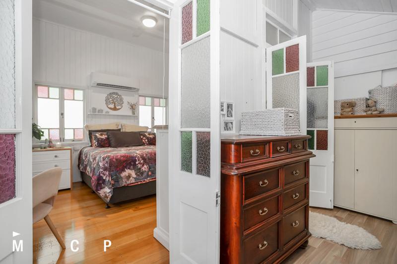 The home features beautiful old world charm throughout such as tongue and groove walls, extra high ceilings, leadlight doors, and windows plus fretwork above internal doors.