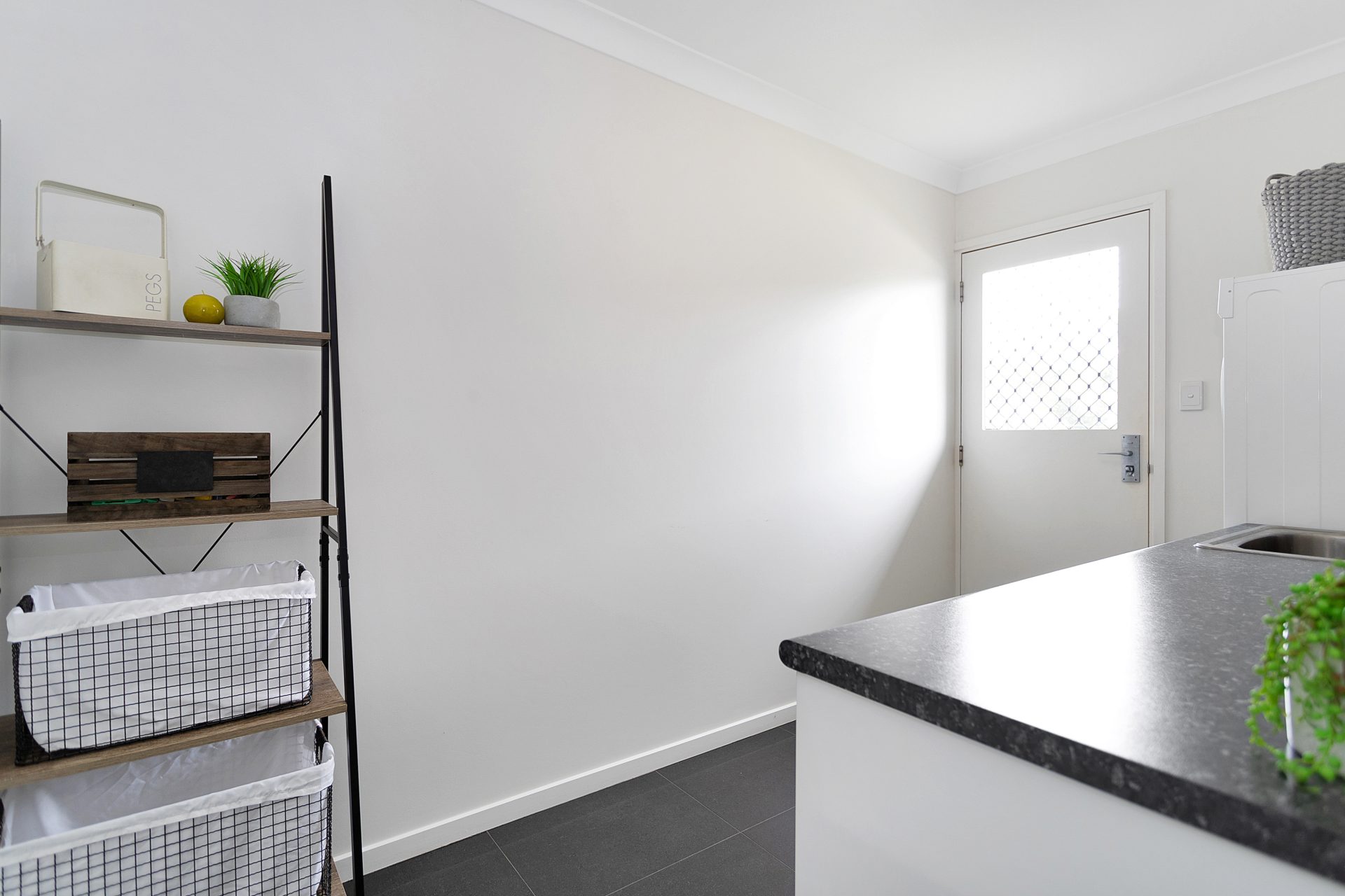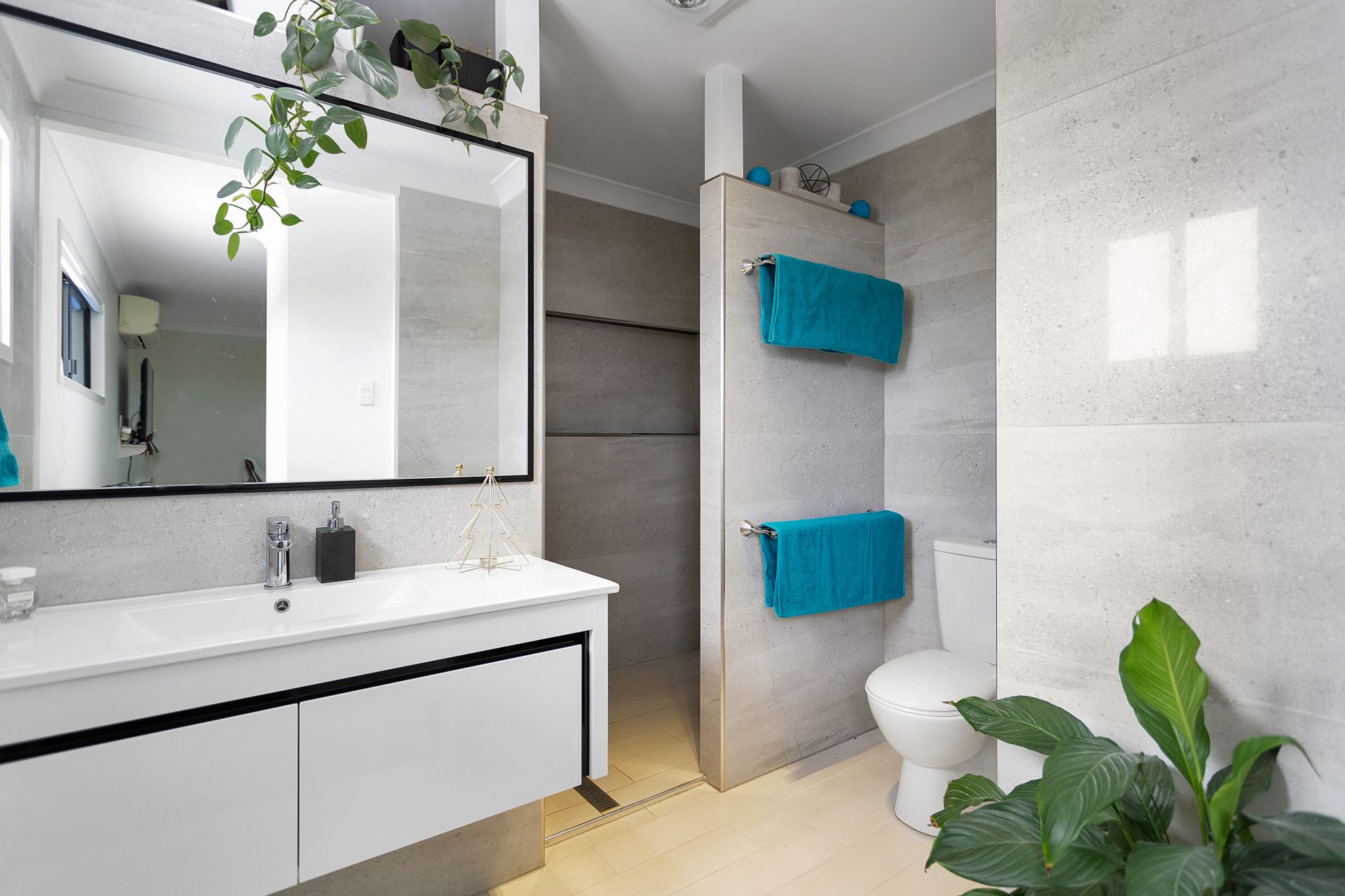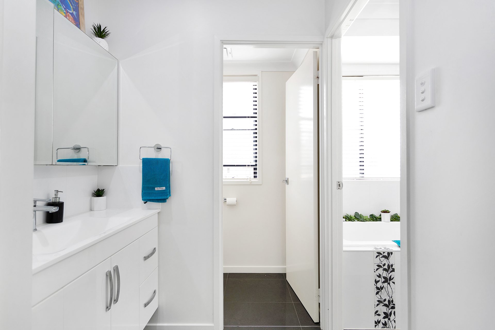 Stunning main bathroom with separate toilet and good sized laundry + powder room at the opposite end of the home. Remote control garage on house.