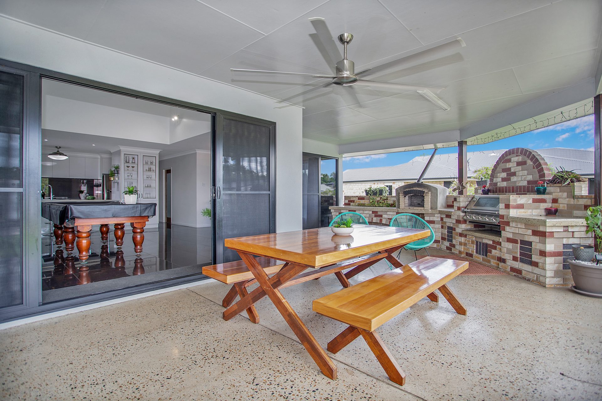 Living areas flow out on to the fantastic outdoor area. Built-in bbq and pizza oven make this the perfect spot for entertaining.