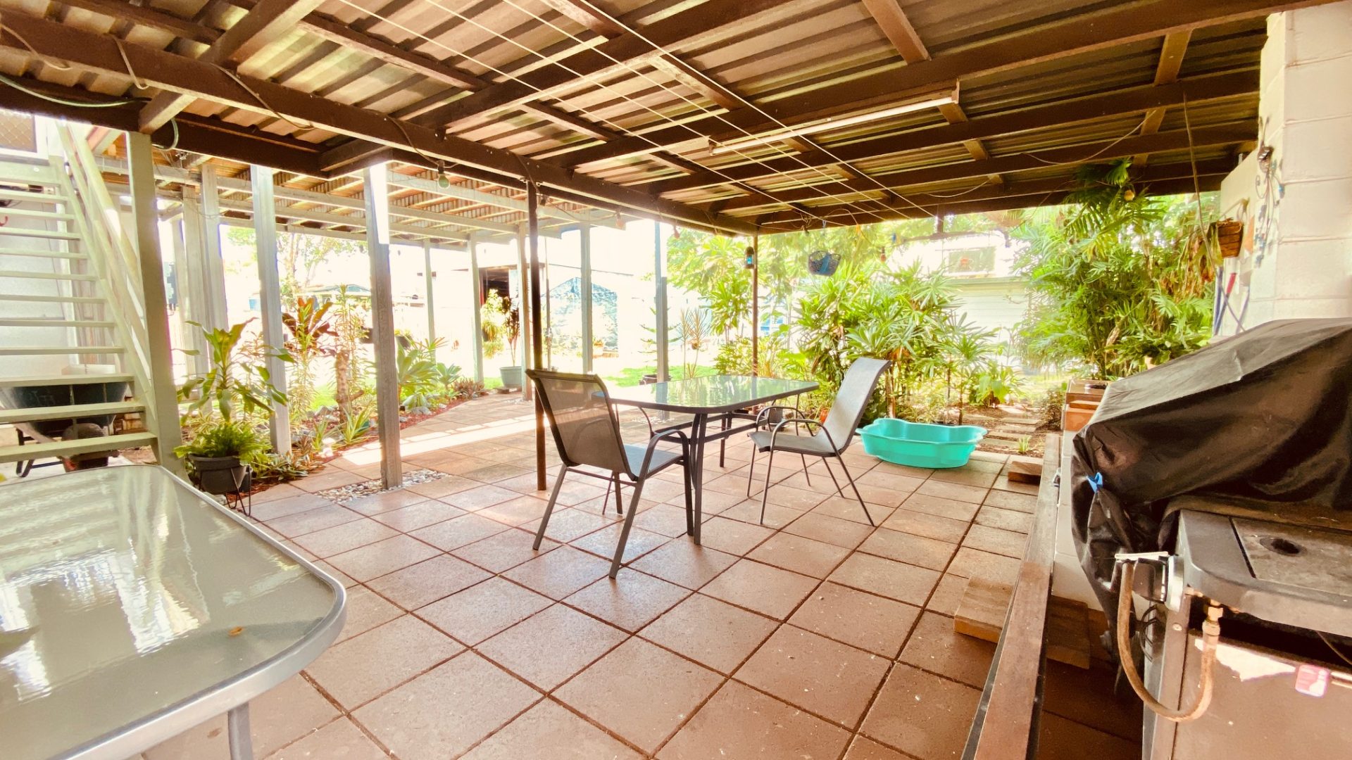 • Large covered entertainment area downstairs