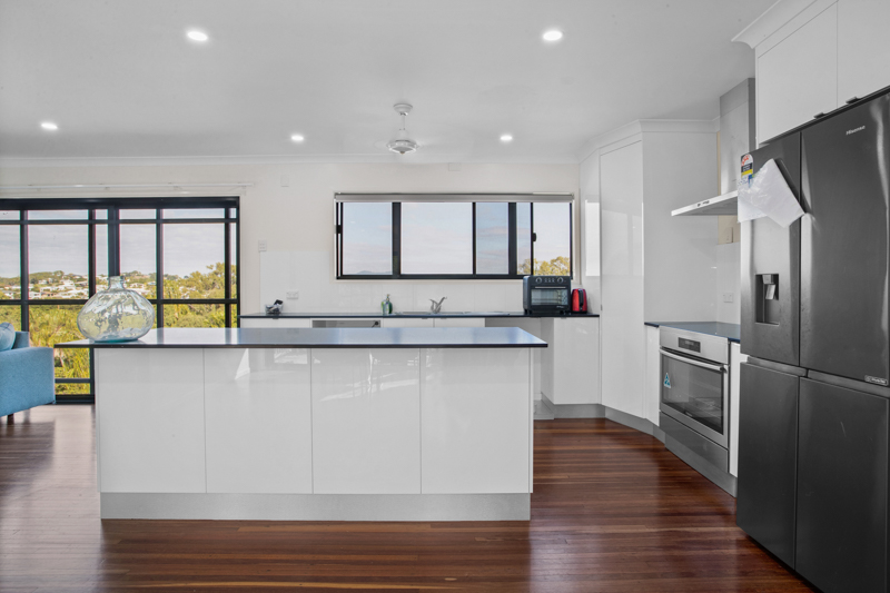 Set high on the hill in a tightly held street, this four-bedroom, two-bathroom residence sits on an expansive 3,881sqm allotment – a landholding of this scale in Dolphin Heads is exceptionally rare and unlikely to be replicated as the area continues to mature. From this elevated position, you’re within walking distance to the beach, enjoying sea breezes and the relaxed coastal lifestyle that makes this location so sought after.
