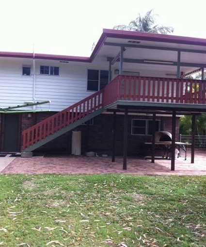 The 2 story property boasts 2 bedrooms upstairs and 2 bedrooms/utility room downstairs, 1 bathroom upstairs and 1 downstairs, open plan living upstairs, good size kitchen with stainless steel appliances and breakfast bar, internal timber stairs, an outdoor covered deck, a double carport for 2 cars as well as a double bay shed 9.5m x 7.5m, powered with side access.