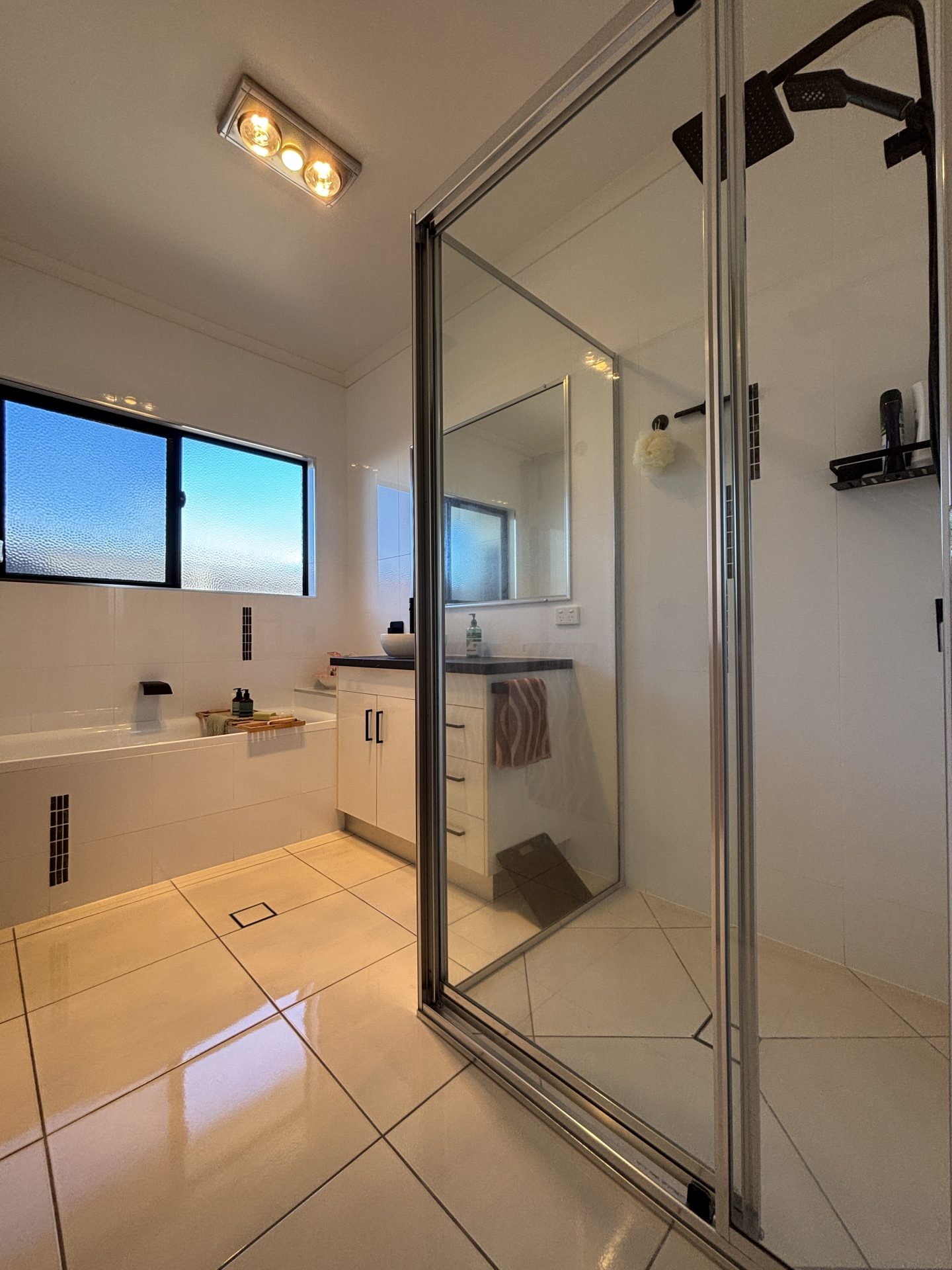 Master bedroom with a stunning ensuite featuring a walk-through double shower and double vanity