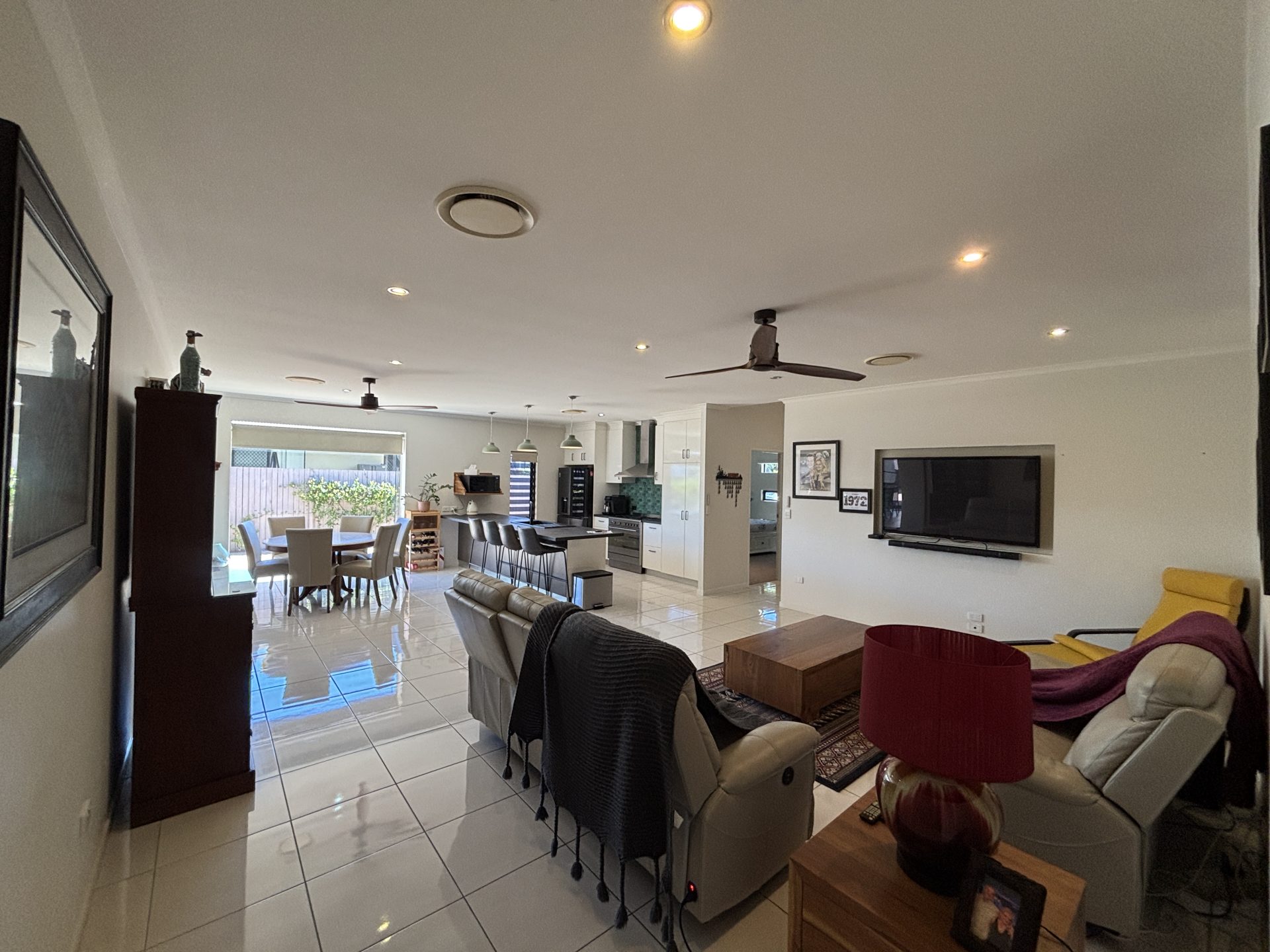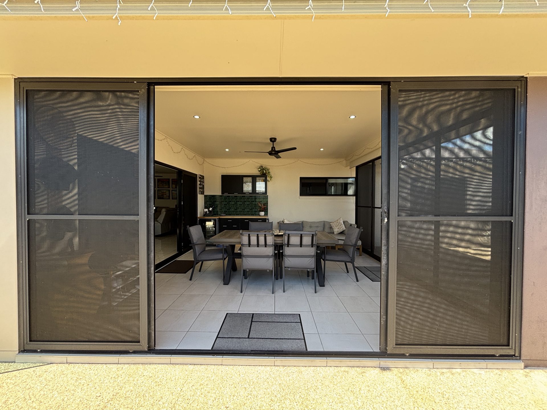 Seamless flow to the large, fully fly-screened rear patio with an excellent aspect – extremely liveable year-round